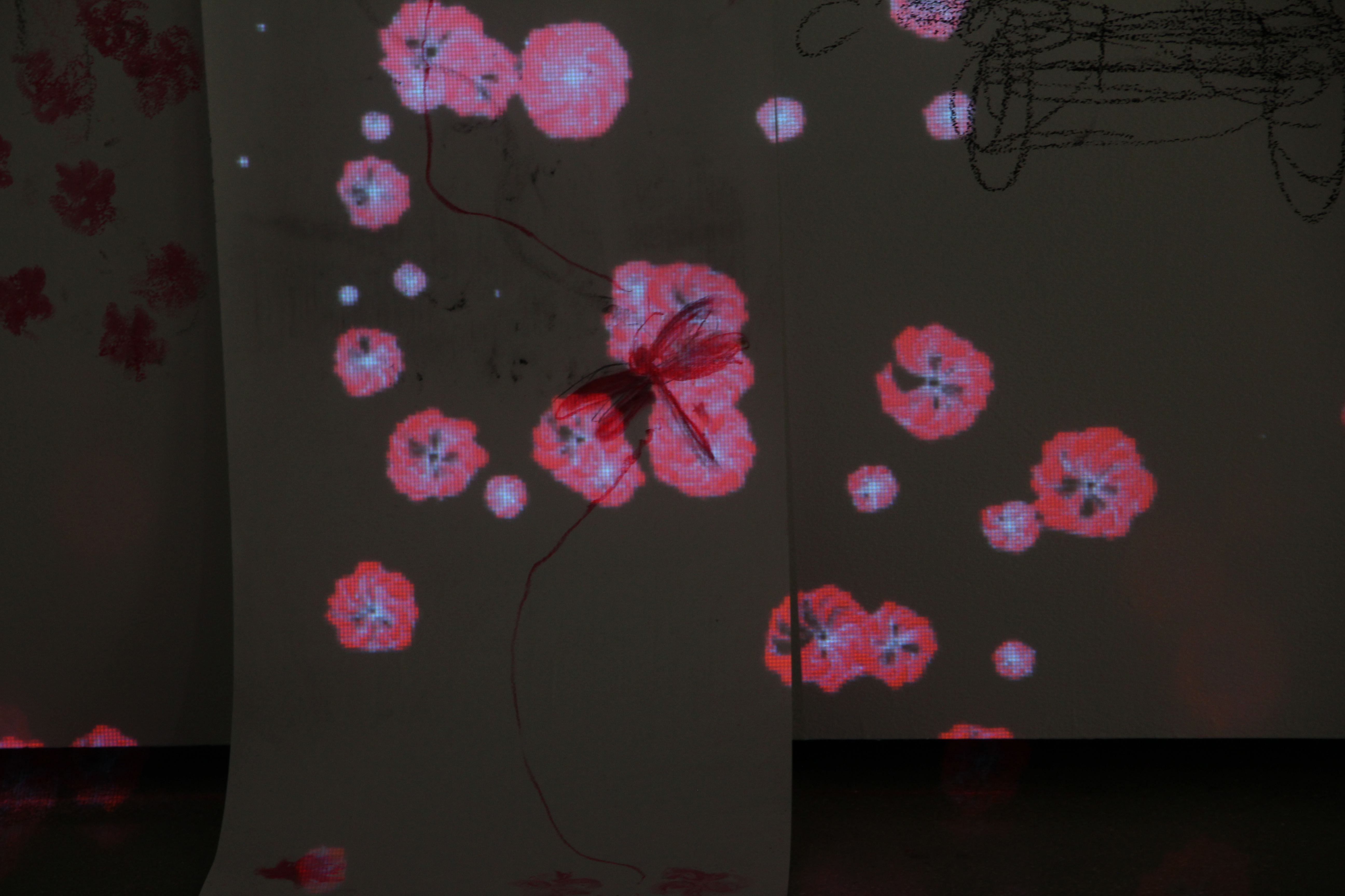 created a multimedia installation using the digitally animated ink drawings to